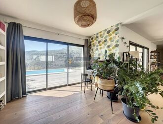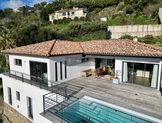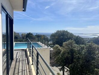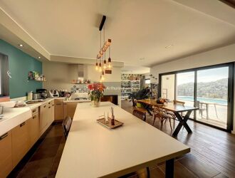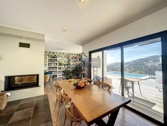 Une somptueuse terrasse en IP avec piscine borde l'ensemble, offrant des extérieurs aussi bien côté mer que montagne.